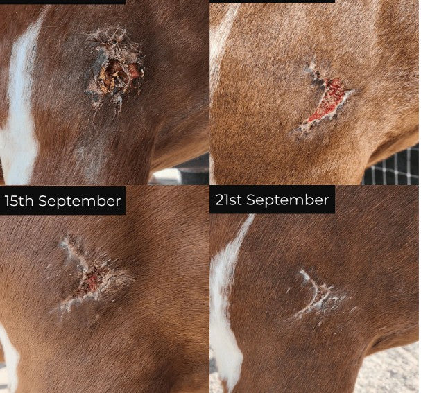 Use it in hard-to-cover spots like hocks, shoulders, pasterns and faces. No stinging. No sticky mess. Just calm, clean skin support.