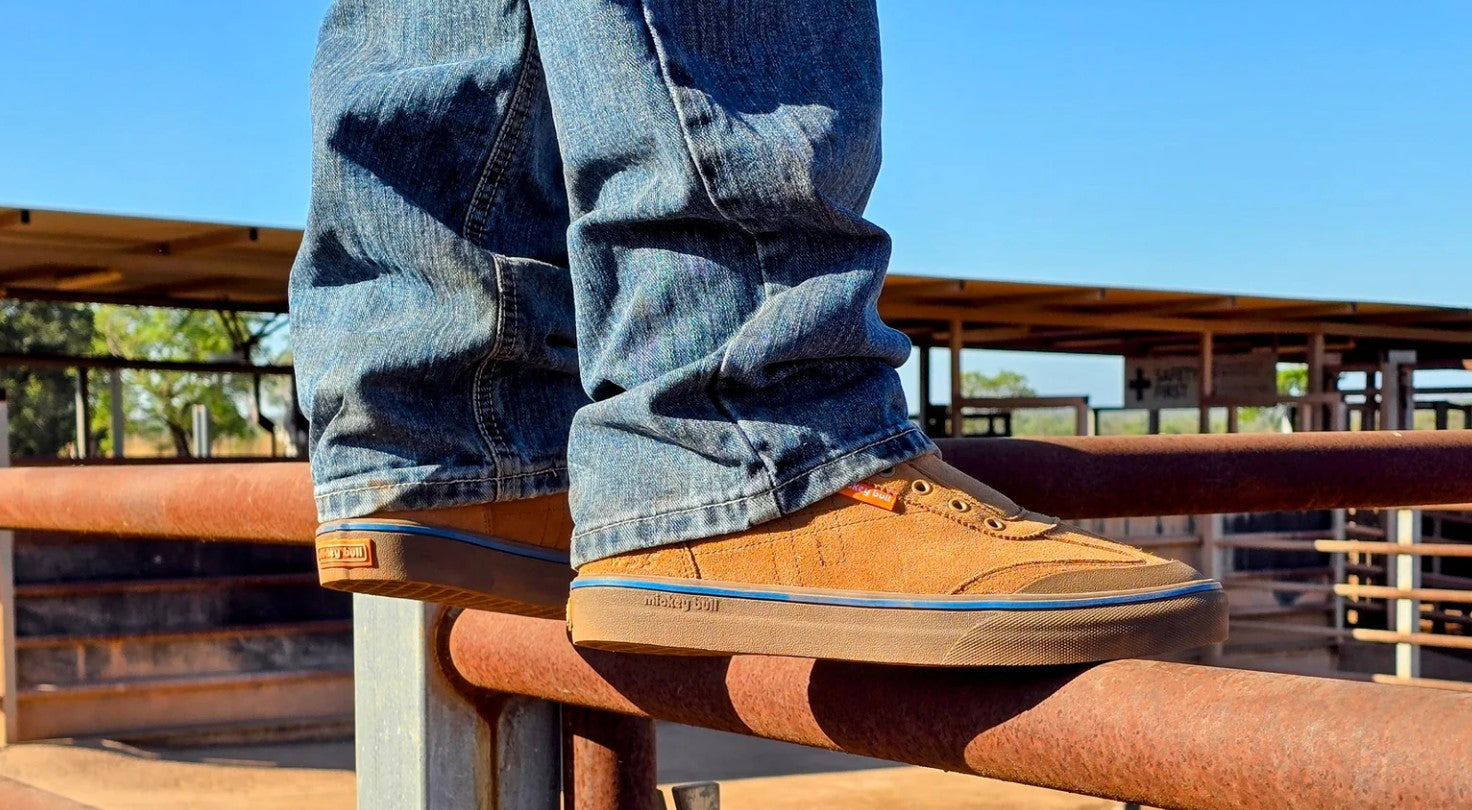 Durable, easy care roughout suede leather uppers matched with the next gen #55 mickey bull mesh-grip sole.