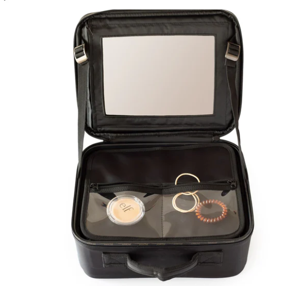 The designated storage case features a built-in mirror, an inner cover with clear pockets, and customisable partitions so you can easily arrange your items exactly how you like them.