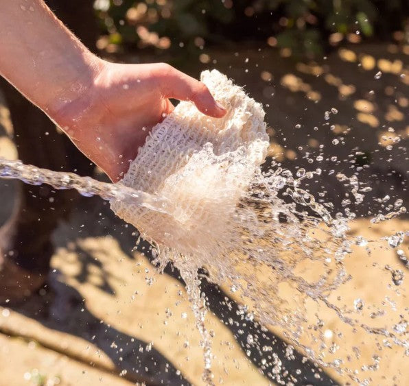 - Place the shampoo bar inside the hessian bag and wet thoroughly