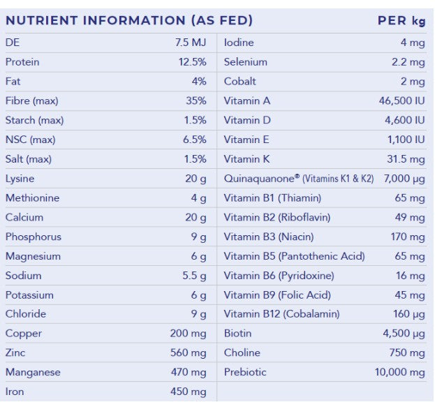 A cereal grain-free balancer pellet, designed for metabolic horses and ponies, formulated to be fed at a low daily rate.