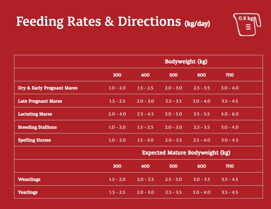 Divide feeds into two or more smaller meals if feeding more than 0.5 kg per 100 kg of bodyweight in 'hard feed' per day.