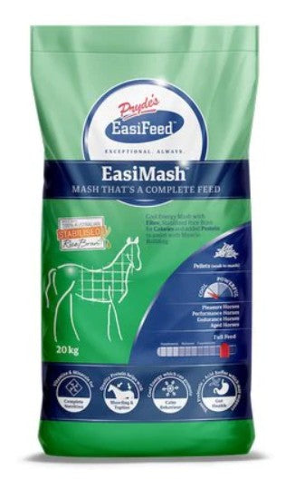 Prydes EasiMash is a highly nutritious, all-in-one feed solution for horses, providing a balance of fibre, protein, and energy. It contains Australian stabilised rice bran, rich in branch-chain amino acids (BCAAs) like leucine, which support muscle building and post-exercise recovery. The formula is fortified with vitamins and minerals, and it includes a unique blend of oils from rice bran, full-fat soybean, and canola oil to enhance coat shine and sustain energy. Additionally, yeast prebiotics, red marine algae (Acidbuffer), and enzymes help support gut health and maintain a resilient digestive system.