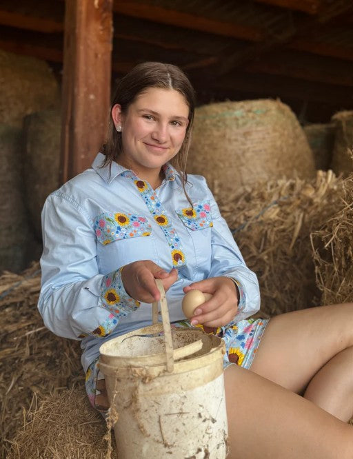 Designed for life on the land, the Dusty Wattle Work Shirt is made to be pretty, practical and comfortable while going about your days work. With generous long sleeves, the relaxed fit and large pockets this work shirt will be a staple in your collection. Made with high quality 100% mid-weight cotton, the work shirt is breathable even on our hot days.
