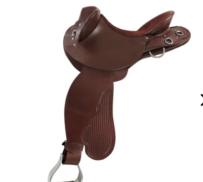 This Tanami saddle is hand-crafted using pure vegetable-tanned, Oak Brown saddle leather with a padded, suede seat and basket-weave stamping.