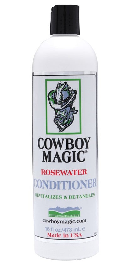 Experience the power of Cowboy Magic Rosewater Conditioner, designed to effectively remove mineral and chemical buildup from hair caused by hard bore water and town water. This concentrated herbal blend not only detangles and conditions but also strengthens your horse's hair, leaving it smooth and manageable. Enriched with Sun Fade Brighteners, it protects against sun damage. Allergy tested and dermatologist reviewed, this versatile conditioner is safe for use on horses, humans, livestock, and pets.