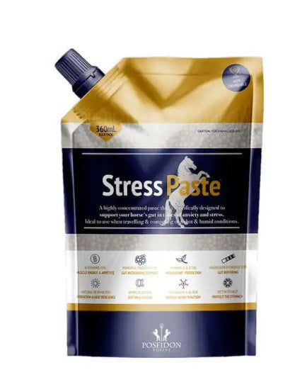 A concentrated 60ml nutritional formula designed to support your horses in times of acute stress. Such times may include when competing, racing, transporting or in extreme heat & humidity. Stress Paste is designed to specifically address responses to stress and keep your horse eating and hydrated with well-functioning, well protected muscles. This is why it is complete with so many ingredients. Stress Paste is also designed to support the gut so it and it’s bacteria can remain healthy during higher stress periods.